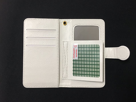手帳型Androidスマホケースは、ガラスミラー付きとなっています。
