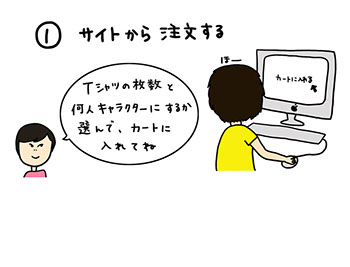 問題がなければTシャツのプリントへ入り、当店から商品を発送しましたら「発送完了メール」をお送りいたします。