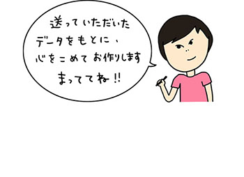 ご注文メールの内容に従って情報をご記入して、写真データ(jpeg,pngなど)を添付してメールを送信してください。