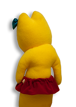 身長約60センチに抱きごごちのよい重量感。表面の素材からスカートの生地までこだわり抜いた最高のグッズです。