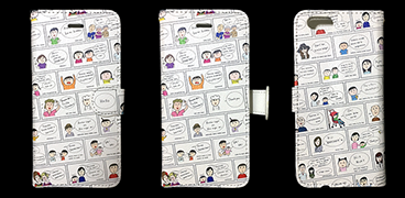 1周年を記念してデザインされた手帳型スマホケース。作者いちおしのグッズです。