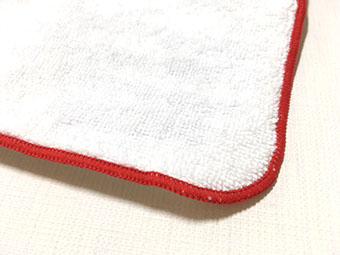 タオル表面の毛(パイル)をカットし(シャーリング加工)高級感があり肌ざわりも良く、縫製が正確で、生地のゆがみがほとんどありません。(画像はどうでもいいタオルです)