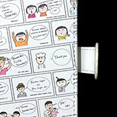 各コマにはあの名シーンがローマ字と英語でオシャレにデザインされています。