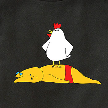 仲良しな2人ですが、いつもよしこに振り回されています。でもたまには、とりも威張りたい!そんなレアなシーンがTシャツになりました。とりのドヤ顔と、よしこのむっとした表情がおもしろい1枚。