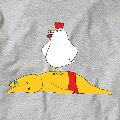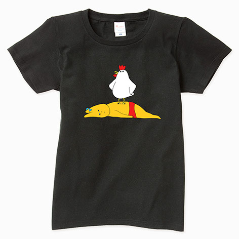 仲良しな2人ですが、いつもよしこに振り回されています。でもたまには、とりも威張りたい!そんなレアなシーンがTシャツになりました。とりのドヤ顔と、よしこのむっとした表情がおもしろい1枚。