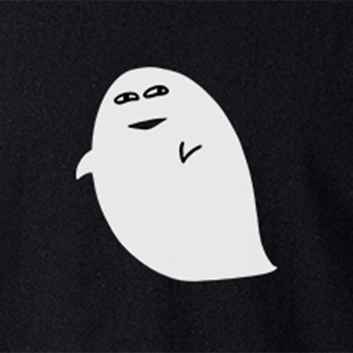 2019年の新作は、全然怖くないおばけのTシャツができたよ!いつもニヤニヤしてるおばけです。
